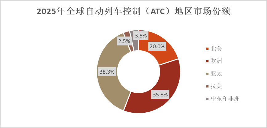 欧洲地区占比35.8%,凭借深厚的轨道交通技术积淀,成为全球ATC技术输出的核心区域。阿尔斯通、泰雷兹等本土企业依托完善的供应链与技术储备,既服务于欧盟境内高铁与城轨的新建线路,也将其信号系统方案向全球输出,市场处于技术引领与稳步扩张阶段。